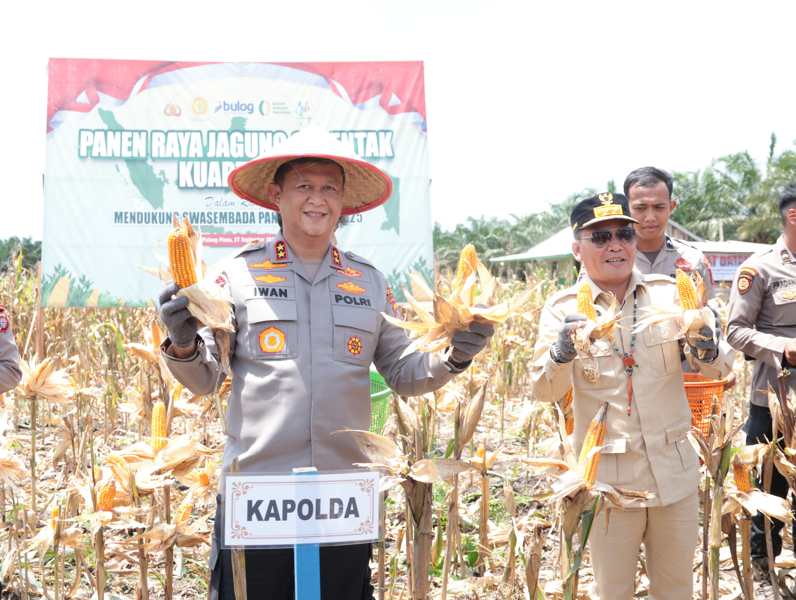 Palangka Raya (Kalteng), rajawalitujuhnews.com – Kapolda Kalimantan Tengah Irjen Pol Iwan Kurniawan bersama Gubernur H. Agustiar Sabran melaksanakan panen raya jagung kuartal III, di Desa Anjir, Kec. Kahayan Hilir, Kab. Pulang Pisau (Pulpis), Sabtu (27/9/2025).
