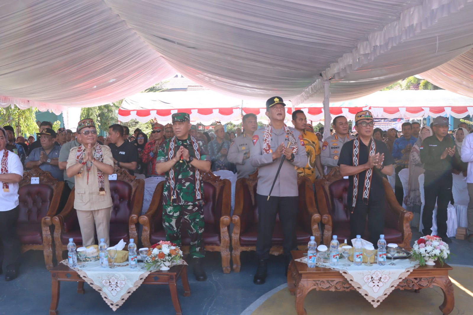 Rombongan yang terdiri dari pejabat tinggi daerah dan Forkopimda disambut dengan antusias oleh para siswa dan guru SMAN 1 Sampit.