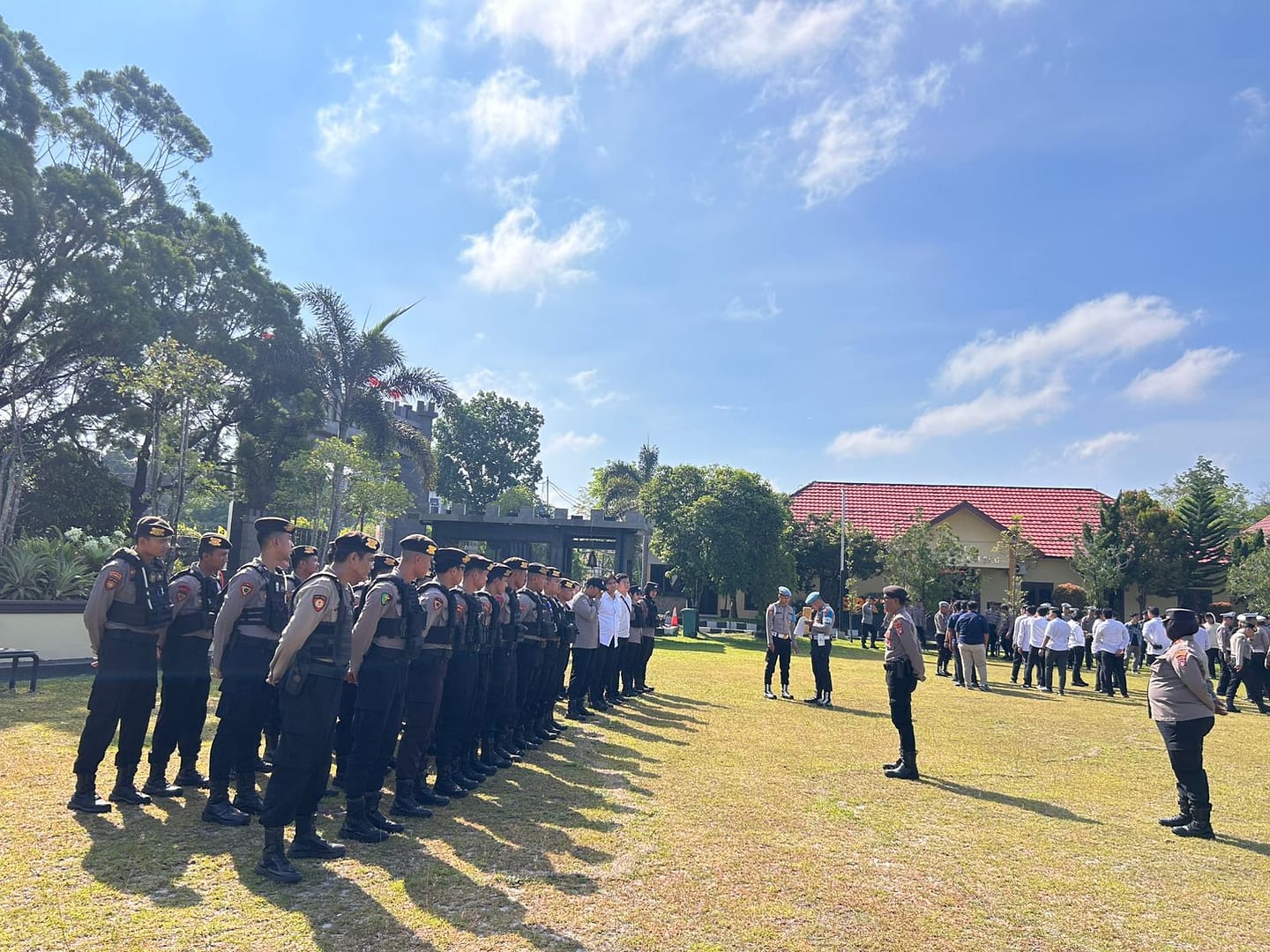 Palangka Raya (Kalteng), rajawalitujuhnews.com – Personel Polresta Palangka Raya mengikuti apel kesiapan pengamanan markas komando (Sispamako) yang digelar di Lapangan Barigas, Mapolda Kalimantan Tengah, Jalan Tjilik Riwut Km. 1, Senin (13/10/2025).