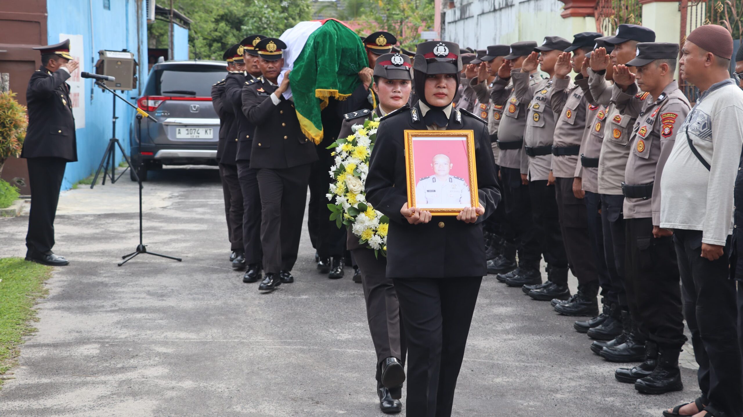 Upacara Pelepasan Jenazah digelar pada rumah duka di kawasan Jalan Poncowati / Rajawali VIII, Kota Palangka Raya, Kalimantan Tengah, yang dihadiri oleh Kapolresta, Kombes Pol. Dedy Supriadi beserta para Pejabat Utama, Perwira dan personel, Minggu (12/10/2025) siang.