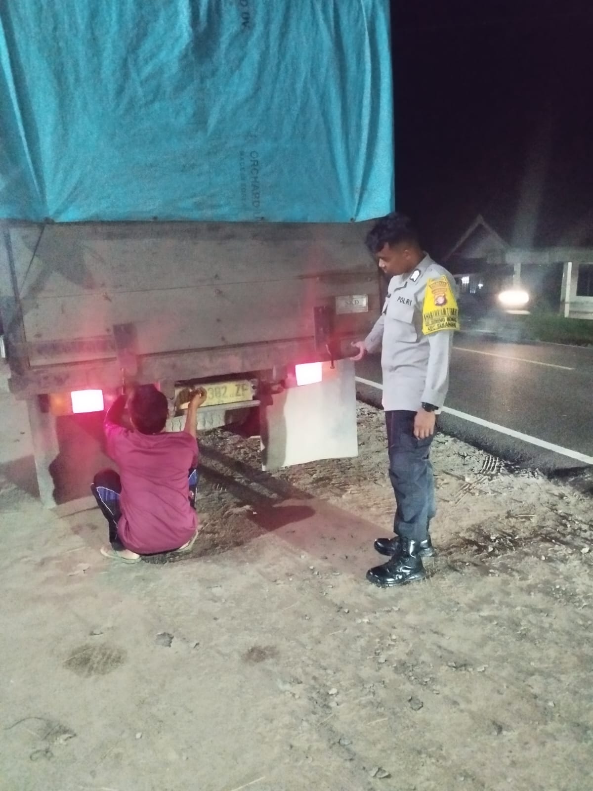 Personel Polsek Sabangau mendapati sebuah truk mengalami kerusakan di pinggir Jalan Mahir Mahar, tepatnya di Kelurahan Kalampangan, Kecamatan Sabangau, Kota Palangka Raya.