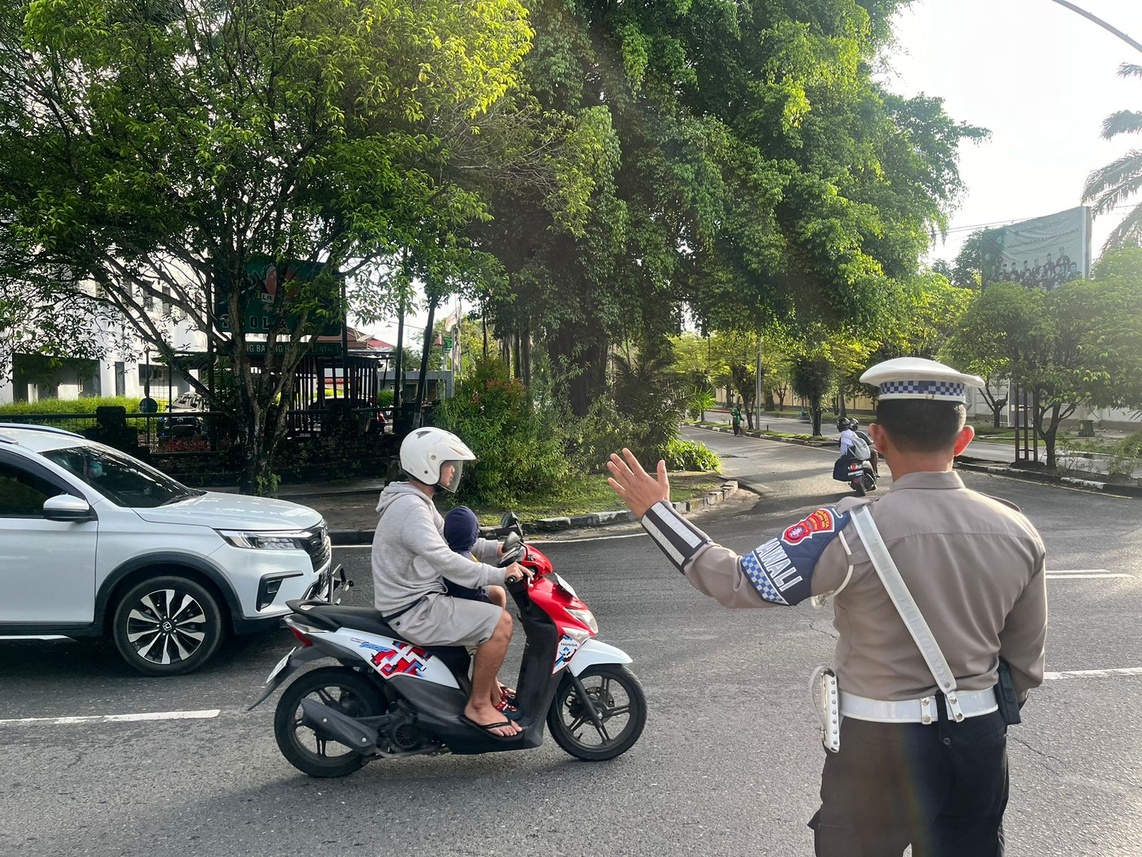 Dalam pelaksanaan, petugas juga memberikan imbauan humanis kepada pengendara untuk selalu mematuhi rambu, menggunakan helm SNI dan tidak menggunakan ponsel saat berkendara demi keselamatan bersama.