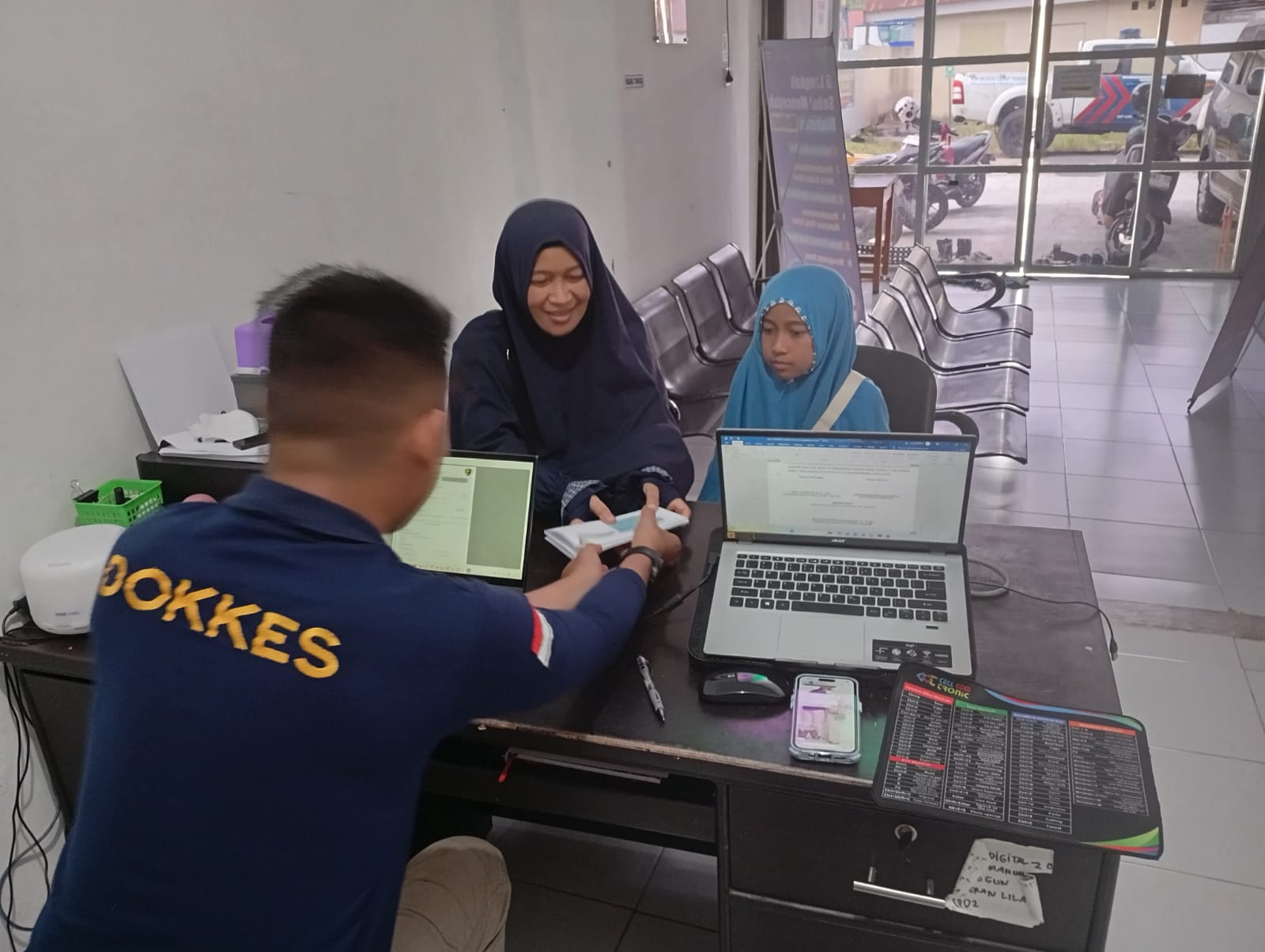 Pelayanan dimulai sejak pukul 08.00 WIB dengan melibatkan tenaga kesehatan Briptu Friendky dan Briptu Ridha Anisya Puteri.